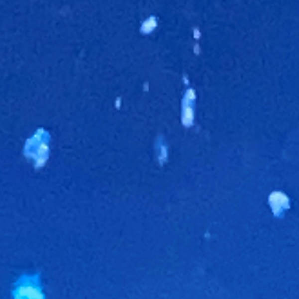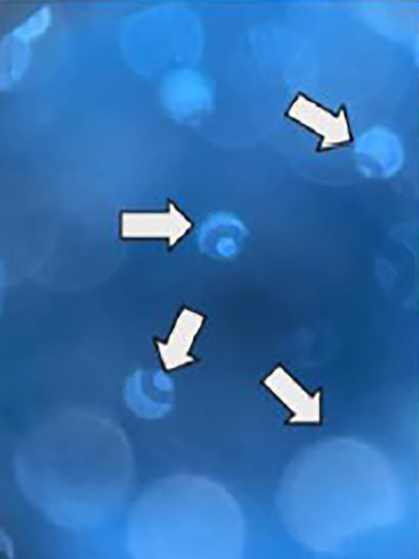 吐出時に一時的に発生し、中央に特徴的な欠けのある大小の球体として観察されます。上昇し消えていきます。