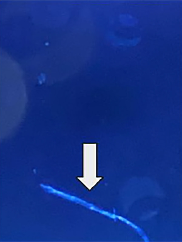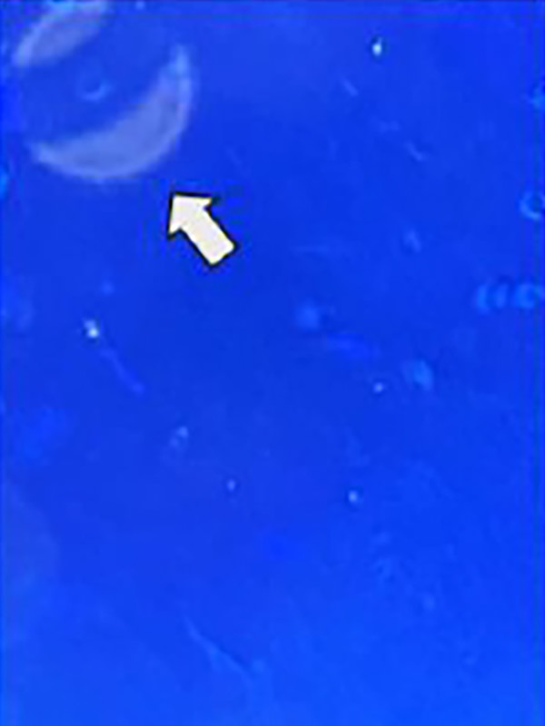 淡青~白色 厚みのある辺縁平滑な集塊にて散見された症例