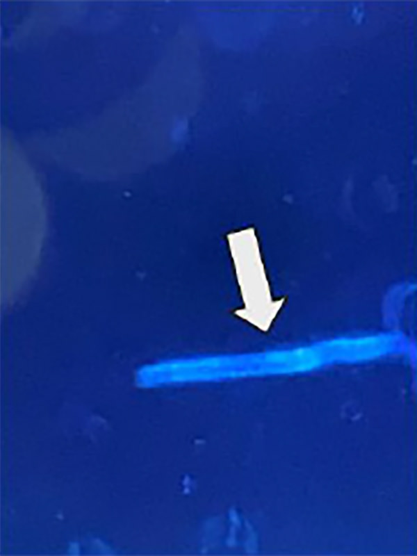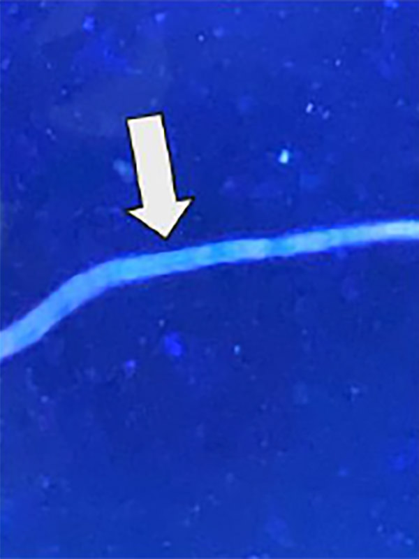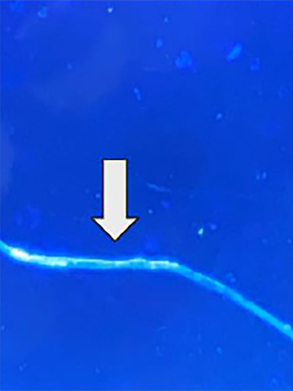 光輝性を持った糸状の特徴的な構造物としてみられます。